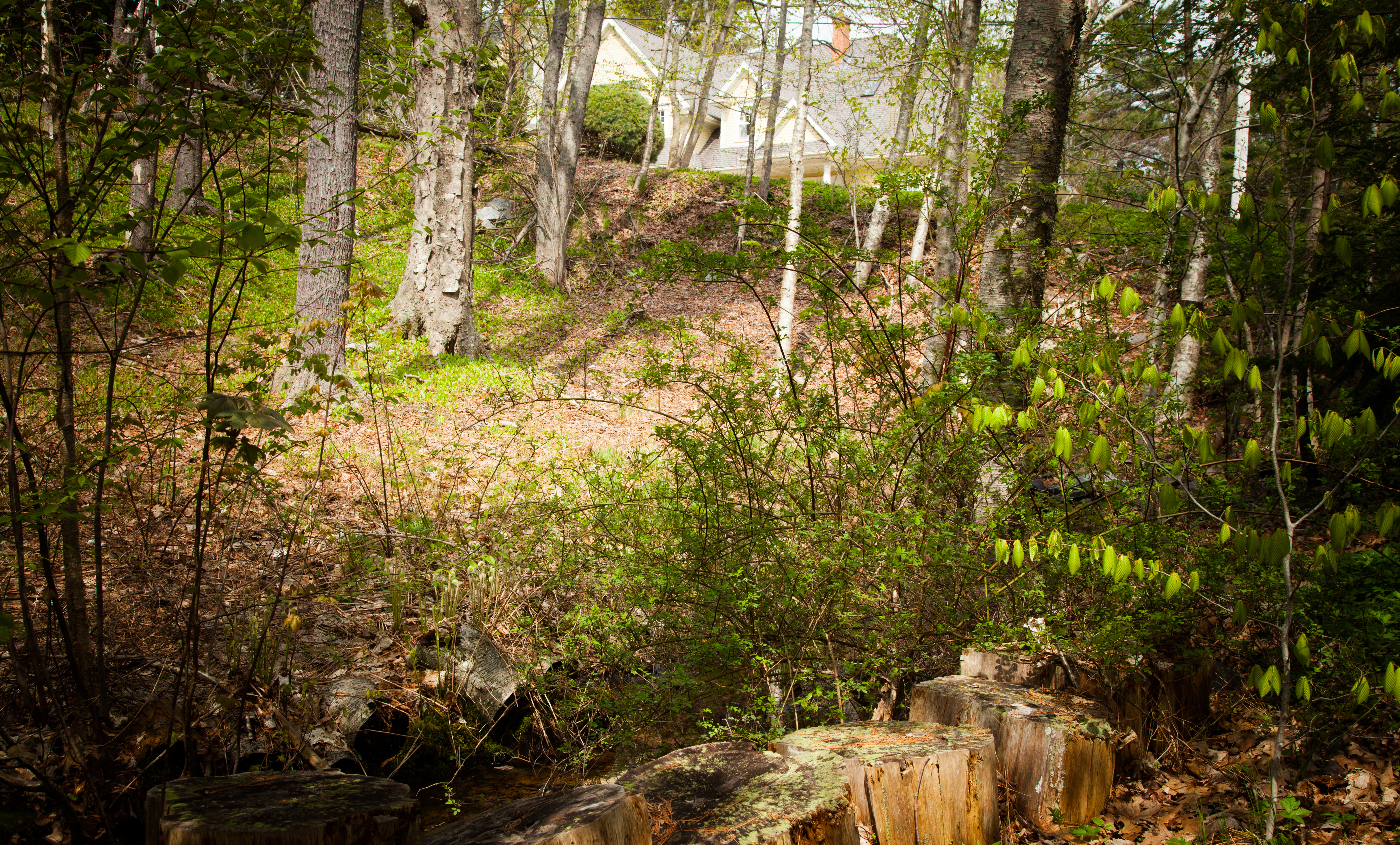 I can almost place Downs’ perch over the brook, and I have learned that an old stream runs underground at the top of the hill, once enclosed in the glass house, and now buried under the road.